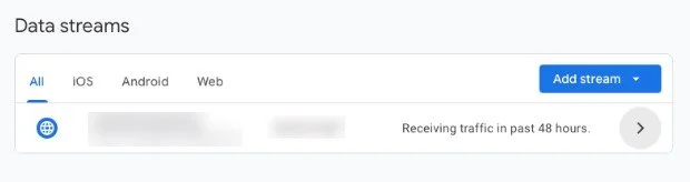 You’ve installed Google Analytics 4 (GA4) and your Admin → Property Settings → Data Streams view looks like this: